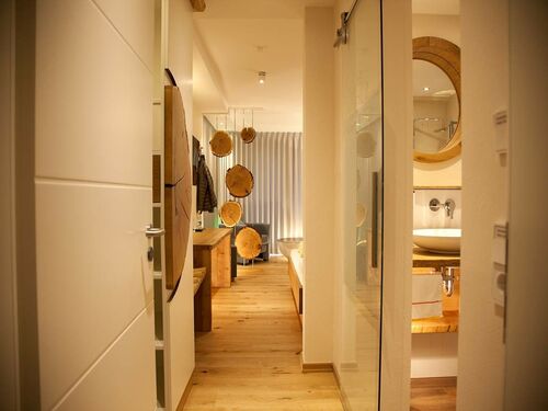 Klare Linien aus dunklem Holz erwarten unsere Gäste an der Rezeption. Unsere Lobby empfängt Sie mit gediegenem Flair und charmanten Accessoires wie einem Holzschaukelpferd aus alten Zeiten.