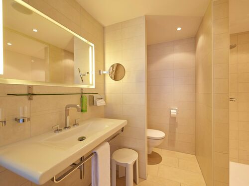 Ein wunderschönes Hotel. Alles tip top! Wir hatten ein tolles, geräumiges Zimmer, alles sehr sauber und attraktiv gestaltet. Ausstattung mit Klimaanlage, Fön, Schreibtisch, Lesesessel, großzügiger Schrank, Nachttisch. Das Essen war hervorragend, ausgezeichnet und hat komplett unsere Erwartungen übertroffen! Es gibt verschiedene Sitzmöglichkeiten zum Essen, innen sowie auf der Terrasse und im Biergarten.Das komplette Personal in allen Bereichen ist immer sehr freundlich und zuvorkommend. Da fühlt man sich richtig willkommen und "Zuhause" In der Tiefgarage kann man seine Fahrräder in einen separaten abschließbaren Raum gebührenfrei unterstellen und auch dort seine E-Bikes aufladen. Das Hotel verfügt über einen Aufzug, somit sind alle Zimmer sehr gut zu erreichen. Auch positiv zu erwähnen ist, das am Nachmittag nochmals jemand die Zimmer checkt, ob noch Toilettenpapier oder sonstiges fehlt. Dies haben wir bisher erst einmal so erlebt. Den Wellness-und Saunabereich haben wir nicht besucht, sah aber sehr einladend aus. Das Lunchpaket durfte man sich beim Frühstück selbst zusammenstellen. Hierfür wurden täglich 2 Behältnisse mit Umweltfreundlichem Besteck und 2 Tüten auf dem Zimmer bereit gestellt. Einwandfrei und eine tolle Sache. Das Arrangement sowie das Hotel können wir wärmstens und mit gutem Gewissen weiterempfehlen, das wird mit Sicherheit niemand bereuen. Vielen Dank für das tolle Erlebnis.