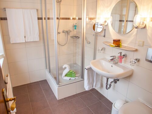 Dusche, WC, Handtücher, Spiegel, Kosmetikspiegel,