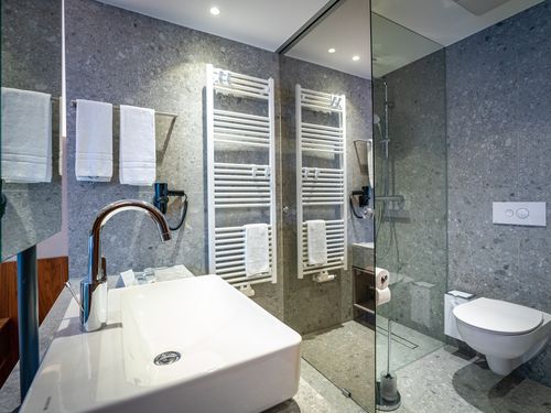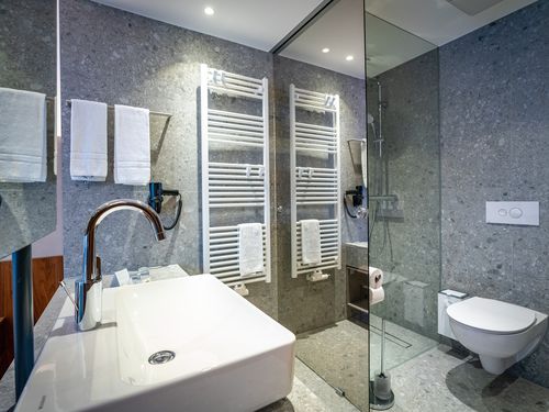Dusche, WC, Handtücher, Haartrockner, Spiegel, Kosmetikspiegel,