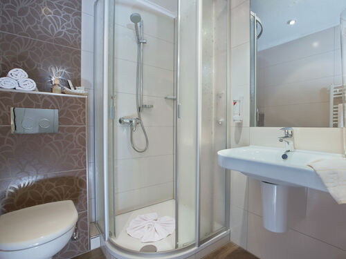 Dusche, WC, Handtücher, Haartrockner, Spiegel, Handtuchtrockner,
