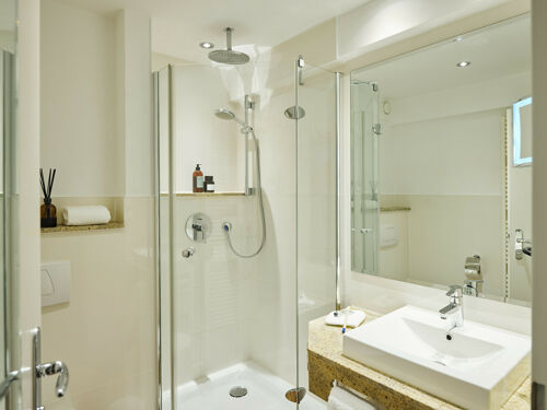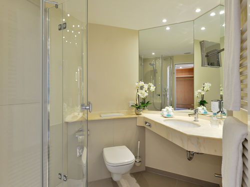 Dusche, WC, Handtücher, Spiegel, Kosmetikspiegel, Handtuchtrockner, Bademantel,