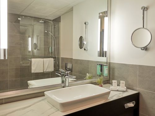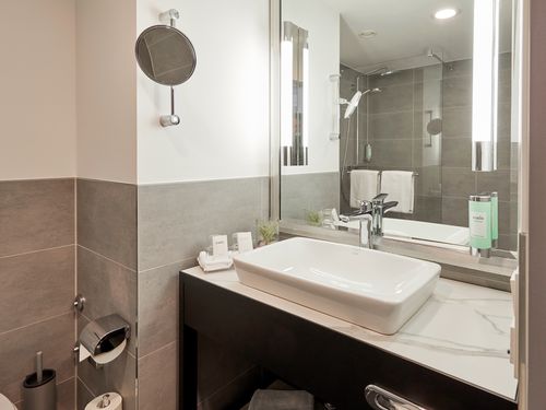 Das Geschäftsviertel beginnt unmittelbar am Hotel und den Flughafen erreichen Sie in 10 Minuten Fahrzeit.