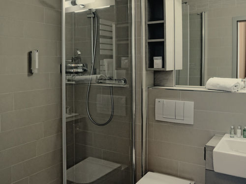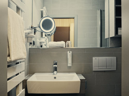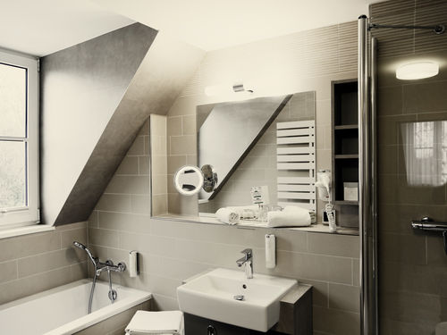 Dusche, WC, Handtücher, Spiegel, Kosmetikspiegel, Handtuchtrockner,