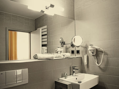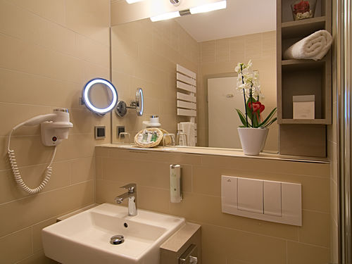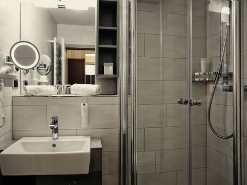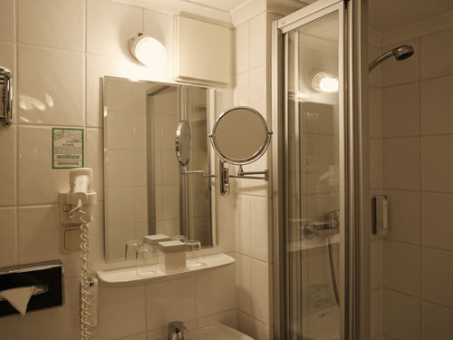 Dusche, WC, Handtücher, Haartrockner, Spiegel, Kosmetikspiegel,