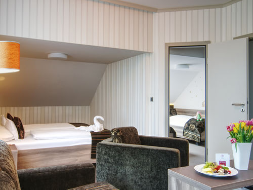 Aufbettung möglich, Babybett zustellbar, Sessel, Schlafcouch, Schreibtisch, Minibar, Zimmersafe, Ganzkörperspiegel, Sitzecke, Kaffee-/Teezubereiter,