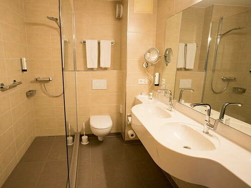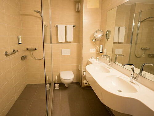 Dusche, WC, Handtücher, Haartrockner, Spiegel, Kosmetikspiegel,
