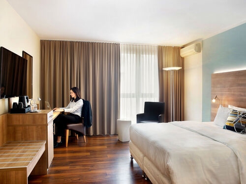 Die Standardzimmer sind modern eingerichtet und geräumig. Die Badezimmer verfügen über Dusche oder Badewanne sowie Fön und Kosmetikspiegel. Zu den kostenfreien Annehmlichkeiten zählen eine Kaffee- und Teebar sowie W-Lan.