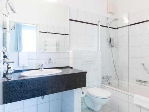 Dusche, WC, Handtücher, Anzahl Bad/Bäder, Haartrockner, Spiegel, Kosmetikspiegel,