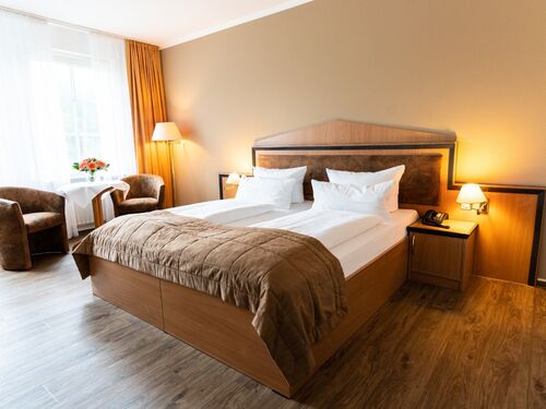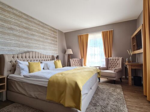 Anzahl Doppelbett/en, Sessel, Tisch + Stühle, Schreibtisch, Minibar,