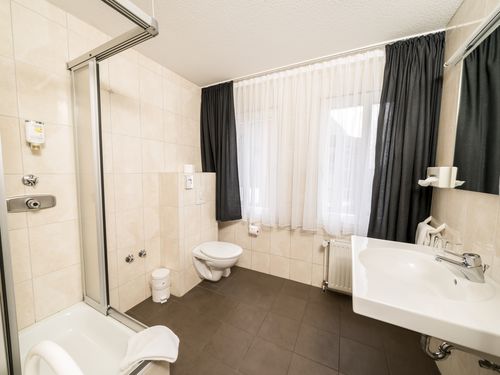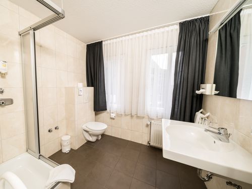 Dusche, Badewanne, WC, Handtücher, Spiegel, Kosmetikspiegel,