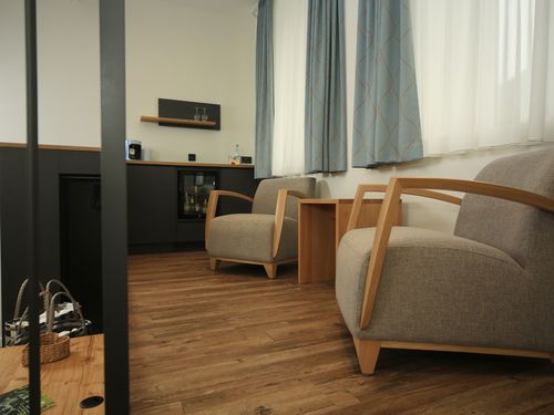 Villa SPA mit großzügiger Saunalandschaft, Kosmetik und Massage, Garten mit Liegebereich, Wohnzimmer mit Kaffeeklatsch