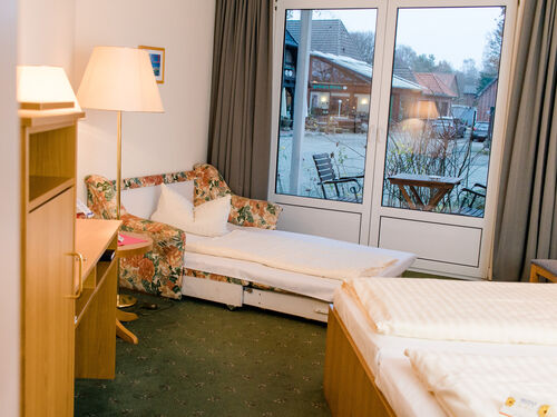 Aufbettung nicht möglich, getrennte Betten, Tisch + Stühle, Ganzkörperspiegel,
