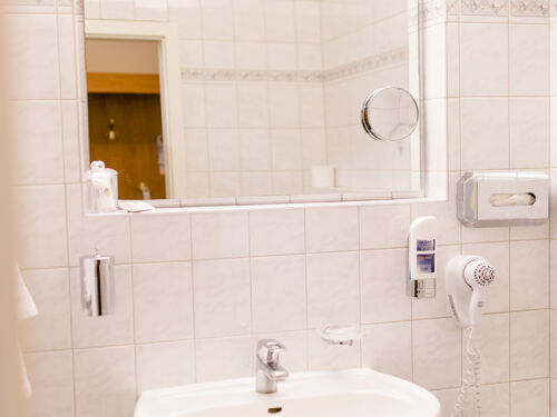 Dusche, Badewanne, WC, Handtücher, Spiegel, Kosmetikspiegel,