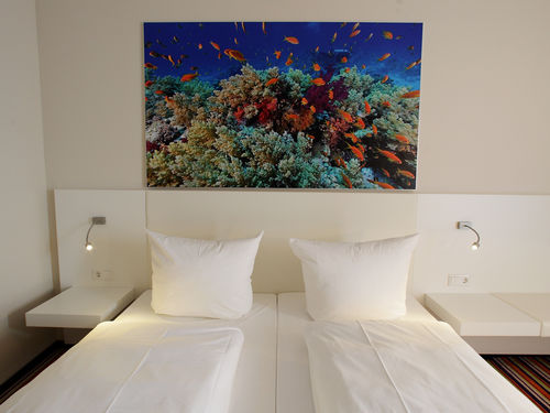 Diese künstliche Unterwasserwelt ist Teil dieses besonderen Arrangements für den kleinen Urlaub zwischendurch. Denn dem Oktopus-Tauchturm ist ein modern und puristisch gestaltetes Hotel (57 Zimmer) gleichen Namens angeschlossen - ein bequemer Ausgangspunkt für das Eintauchen in ein sportliches Wochenende der kurzen Wege.