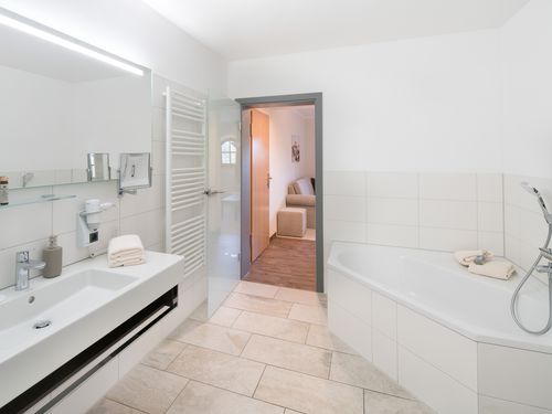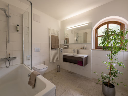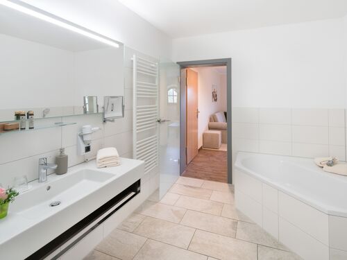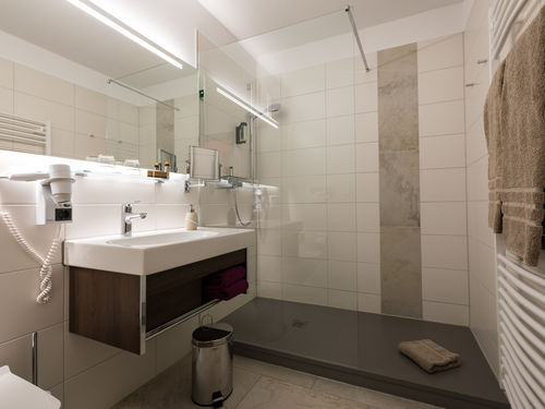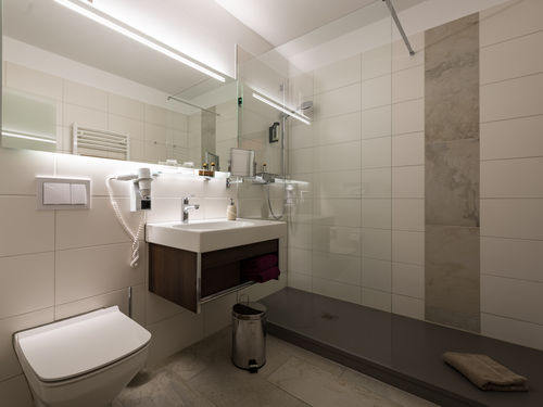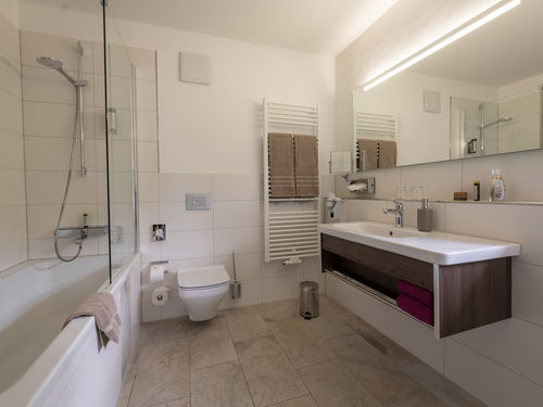 Dusche, Badewanne, WC, Handtücher, Haartrockner, Spiegel, Kosmetikspiegel, Handtuchtrockner, Bademantel, Kosmetik- und Pflegeprodukte,