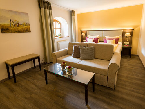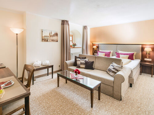 Kinderbett zustellbar, Aufbettung möglich, Sessel, Tisch + Stühle, Schreibtisch, Minibar, Zimmersafe, Sitzecke,
