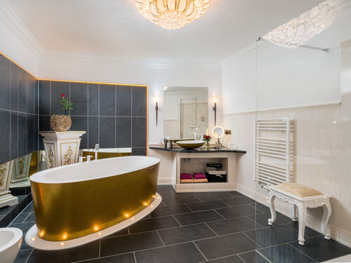 Dusche, Badewanne, WC, Bidet, Handtücher, Haartrockner, Spiegel, Kosmetikspiegel, Handtuchtrockner, Bademantel, Kosmetik- und Pflegeprodukte,