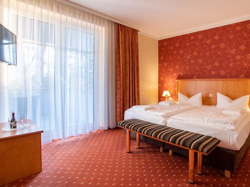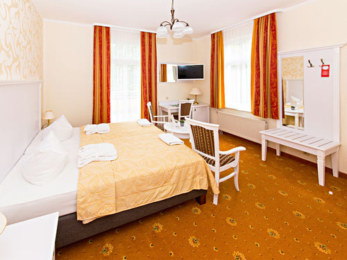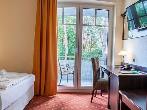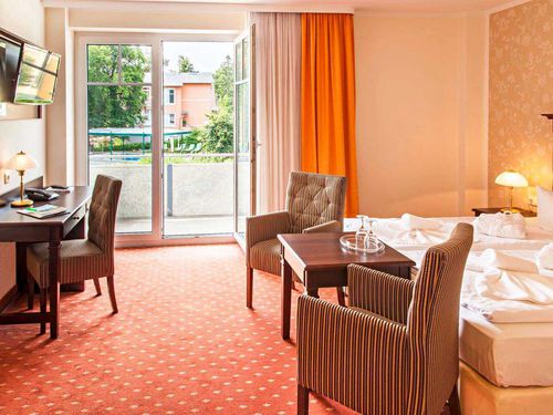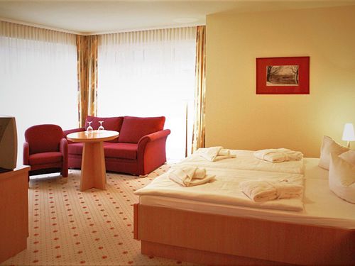 Wir hatten ein Zimmer in einem Nebengebäude im Park. In unserem Zimmer befand sich noch eine Sitzecke. Dadurch konnte man es sich auch gemütlich auch auf der Couch oder Sessel sich bequem machen, sofern man sich auf dem Zimmer aufhielt. Das Zimmer war schön groß und wurde täglich von den netten Damen gereinigt. Wir hatten Halbpension und sowohl das Frühstück, als auch das Abendessen war immer sehr abwechslungsreich und es fehlte an nichts. Das Buffet wurde immer sehr liebevoll angerichtet. Was ich besonders schön fand, war das Dessert. Dies wurde in kleinen Dessertschalen angerichtet, so dass man auch mal 2 verschiedene testen konnte, ohne dass es zu viel war. Das ganze Personal war immer sehr hilfsbereit und freundlich. Die Anlage war sehr gepflegt und die Entfernung zur Promenade und Strand ist nicht weit. Den Wellnessbereich habe ich leider nicht genutzt, da ich persönlich nicht gerne mit Bademantel im Herbst über den Parkplatz bzw. durch den Park gehen wollte. Als kleines "Manko" empfand ich die 12 € Parkplatzgebühren/Tag. Aber ansonsten fanden wir den Aufenthalt in dem Hotel als sehr schön und erholsam.