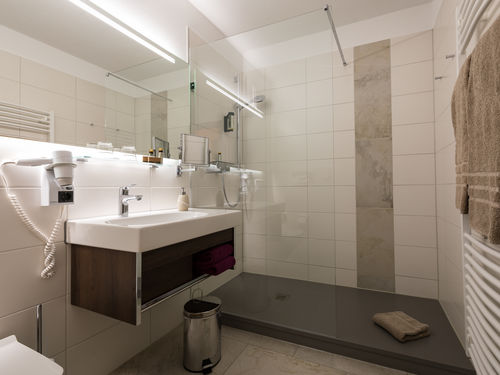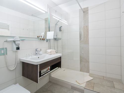 Dusche, Badewanne, WC, Handtücher, Haartrockner, Spiegel, Kosmetikspiegel, Handtuchtrockner, Bademantel, Kosmetik- und Pflegeprodukte,