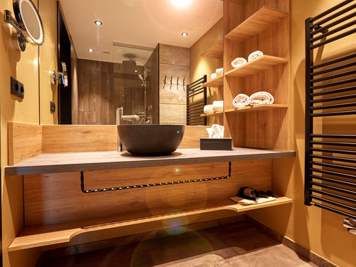 Dusche, Handtücher, Haartrockner, Spiegel, Kosmetikspiegel, Handtuchtrockner,