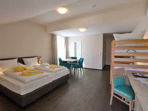 Kinderbett zustellbar, Anzahl Doppelbett/en, Anzahl Etagenbett/en, Babybett zustellbar, Tisch + Stühle,