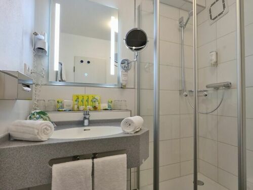 Dusche, WC, Handtücher, Haartrockner, Spiegel, Kosmetikspiegel,
