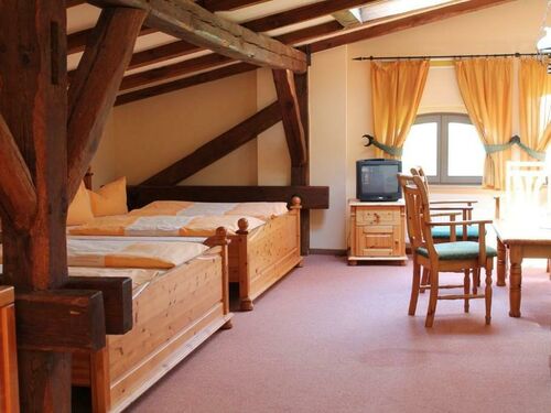 Es erwarten Sie in außergewöhnlicher Atmosphäre 2 Einzelzimmer, 23 Doppelzimmer sowie 2 Mehrbettzimmer. Diese Mehrbettzimmer mit max. 8 Betten, 2 Bäder, Sofa-Sitzecke werden auch liebevoll Schneewittchenzimmer ("7+1") genannt. Die liebevoll eingerichteten Zimmer sind komfortabel ausgestattet mit Dusche/WC, Sat-TV, W-Lan, Kinderbetten und Hochstühle stellen wir gerne zur Verfügung.