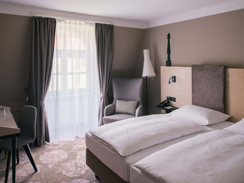 Aufbettung möglich, Babybett zustellbar, getrennte Betten, Tisch + Stühle, Schreibtisch, Zimmersafe, Ganzkörperspiegel,