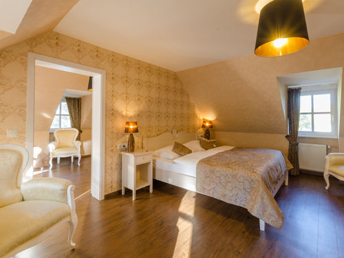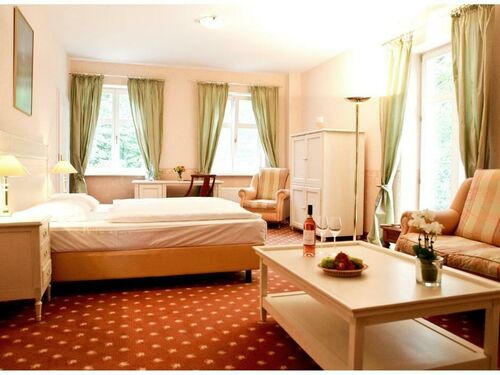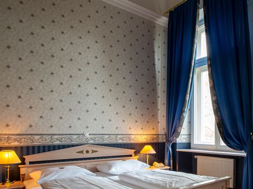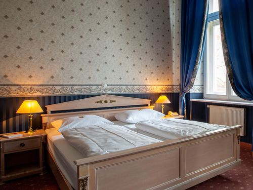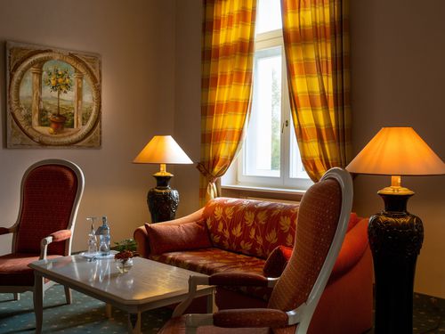 Unsere Zimmer und Suiten bieten jeden nur erdenklichen Komfort mit großzügigem Badezimmer, Telefon, Fernseher. Das Augenmerk gilt der Gemütlichkeit und Persönlichkeit eines jeden Zimmers. Hier dürfen und können Sie sich Zeit nehmen. Wenn Sie irgendeinen Wunsch haben - die dienstbaren Geister des Schlosshotels sind immer für Sie da, wenn Sie sie brauchen. Typisch Schloss - all unsere 44 Zimmer im Schlossgebäude und der nur wenige Meter entfernt liegenden Residenz unterscheiden sich in Form, Farbe und Größe. Schlafen Sie traumhaft in der großzügigen Fürstensuite mit über 85 m² oder in den geräumigen Einzel- und Doppelzimmern mit Seidentapeten bzw. Wandmalereien. Die Zimmer im Schlossgebäude sind per Aufzug zu erreichen, während die Zimmer in der Residenz ausschließlich über eine Treppe zugänglich sind. Alle Zimmer sind Nichtraucherzimmer.