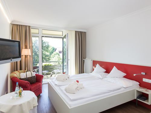 - Hauseigener Mineral-Heil-Therme (Schwimmbecken 31°C, Whirlpool 36°C)