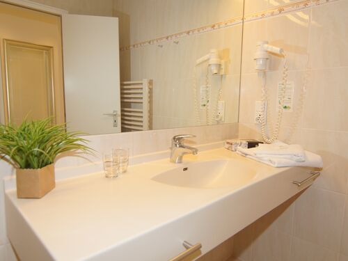 Dusche, WC, Haartrockner, Spiegel, Handtuchtrockner, Kosmetik- und Pflegeprodukte,