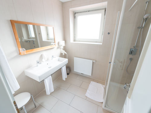 Dusche, WC, Handtücher, Spiegel, Kosmetikspiegel, Handtuchtrockner,