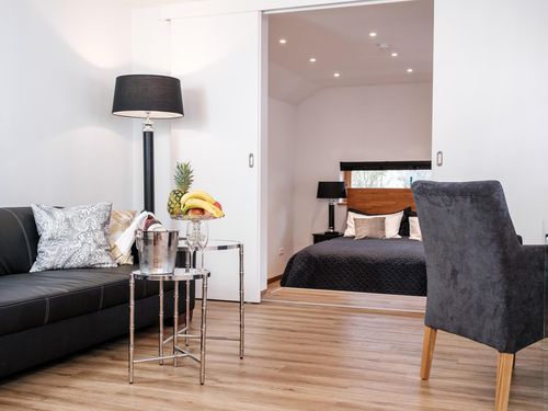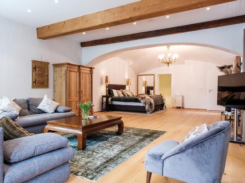 Kinderbett zustellbar, Babybett zustellbar, getrennte Betten, Sessel, Schlafcouch, Couch, Tisch + Stühle, Schreibtisch, Zimmersafe, Sitzecke,