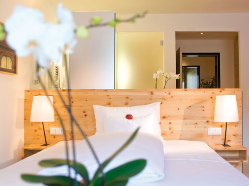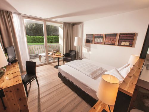 Die lichtdurchfluteten Zimmer bestechen durch ihre freundlichen Farben und hellen, modernen Möbel. Holz und Naturmaterialien schaffen ein gemütliches und zugleich exklusives Wohngefühl. Alle Zimmer verfügen über einen Balkon oder eine Terrasse.