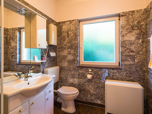 Dusche, WC, Handtücher, Spiegel, Bademantel,
