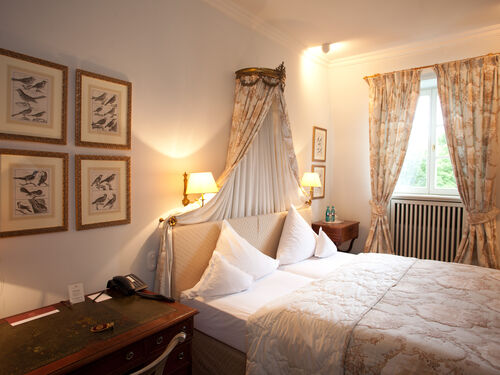 liegt inmitten eines 27-Loch Golfplatzes und verfügt über 21 Zimmer und Juniorsuiten. Jedes ist einzigartig - ausgestattet mit wertvollen Antiquitäten und eingerichtet mit ausgewählten Stoffen. Besonders komfortabel sind die neuen Bäder mit Dusche/WC oder Bad/WC. Telefon, Flachbildfernseher sowie Internetanschluss sind in jedem Zimmer vorhanden.