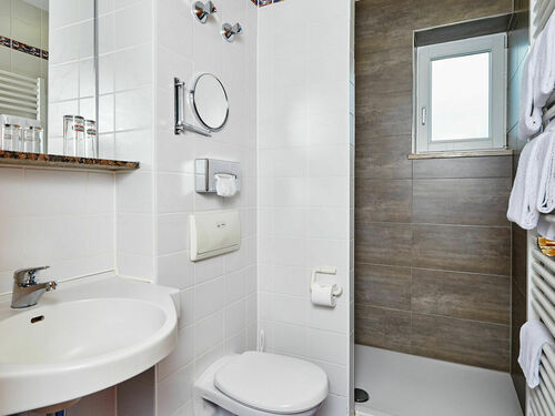 Dusche, WC, Handtücher, Anzahl Bad/Bäder, Haartrockner, Spiegel, Kosmetikspiegel, Bademantel, mit Fenster,