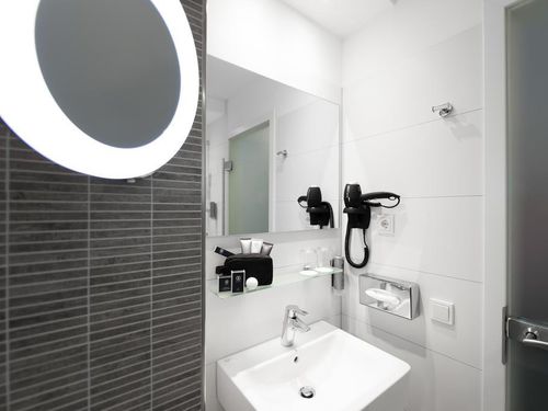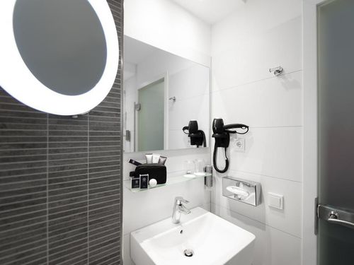 Dusche, Badewanne, WC, Handtücher, Spiegel, Kosmetikspiegel,