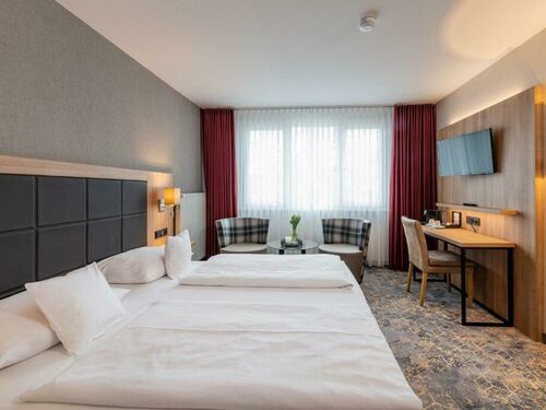 Die Zimmer des Hotels sind komfortabel gestaltet und bieten alles, was man für erholsame Nächte benötigt. Helle Farben, viel Tageslicht und hochwertige Materialien schaffen ein angenehmes Raumgefühl. Alle Zimmer verfügen über bequeme Betten, moderne Bäder, WLAN und einen praktischen Arbeits- oder Sitzbereich.
