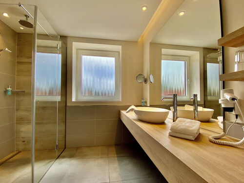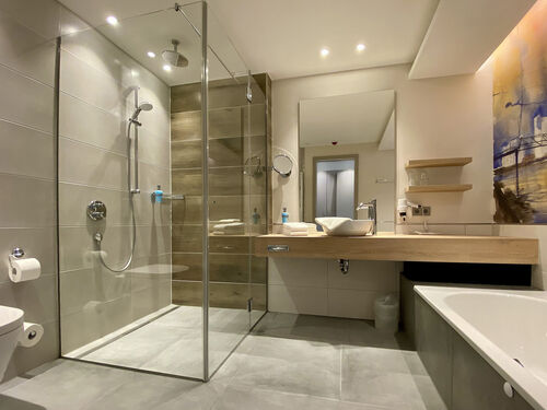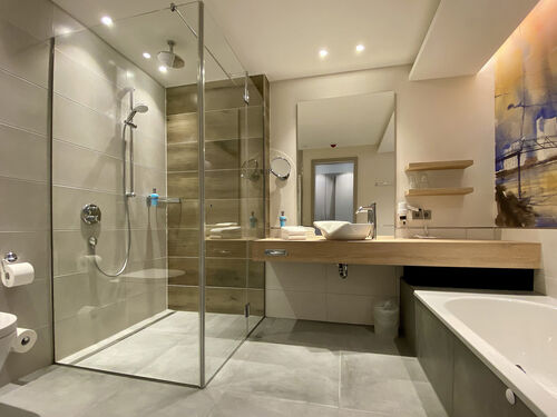 Dusche, WC, Handtücher, Anzahl Bad/Bäder, Haartrockner, Kosmetikspiegel, Bademantel, Whirpool / Whirlwanne,