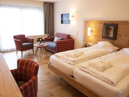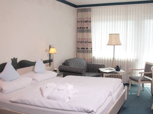 Die Zimmer sind modern im gemütlichen Landhausstil eingerichtet und verfügen über Badewanne oder Dusche mit WC, Bademantel, Haartrockner, Minibar, Sat-TV, Telefon, Radio und Schreibtisch. Im Komfort-Doppelzimmer genießen Sie mehr Freiraum und einen schönen Ausblick und frische Luft von Ihrem Balkon sowie die ruhige Lage zur Gartenseite.