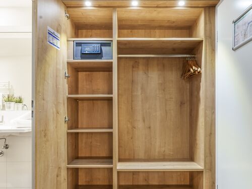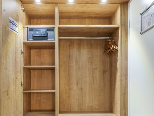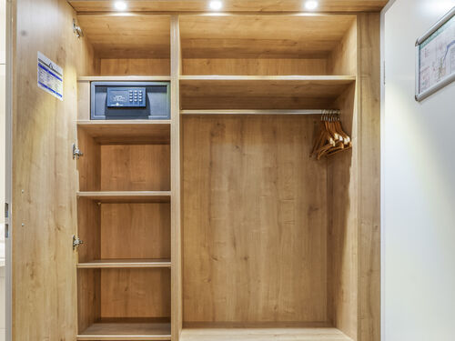 Kinderbett zustellbar, Aufbettung möglich, Babybett zustellbar, Sessel, Tisch + Stühle, Schreibtisch, Zimmersafe, Ganzkörperspiegel,