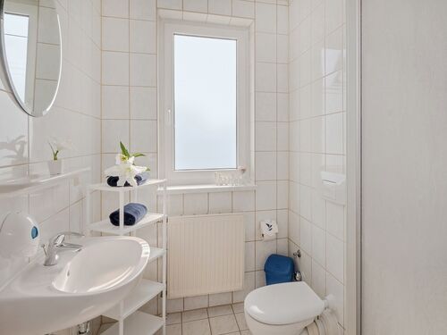 Dusche, WC, Handtücher, Spiegel, mit Fenster,