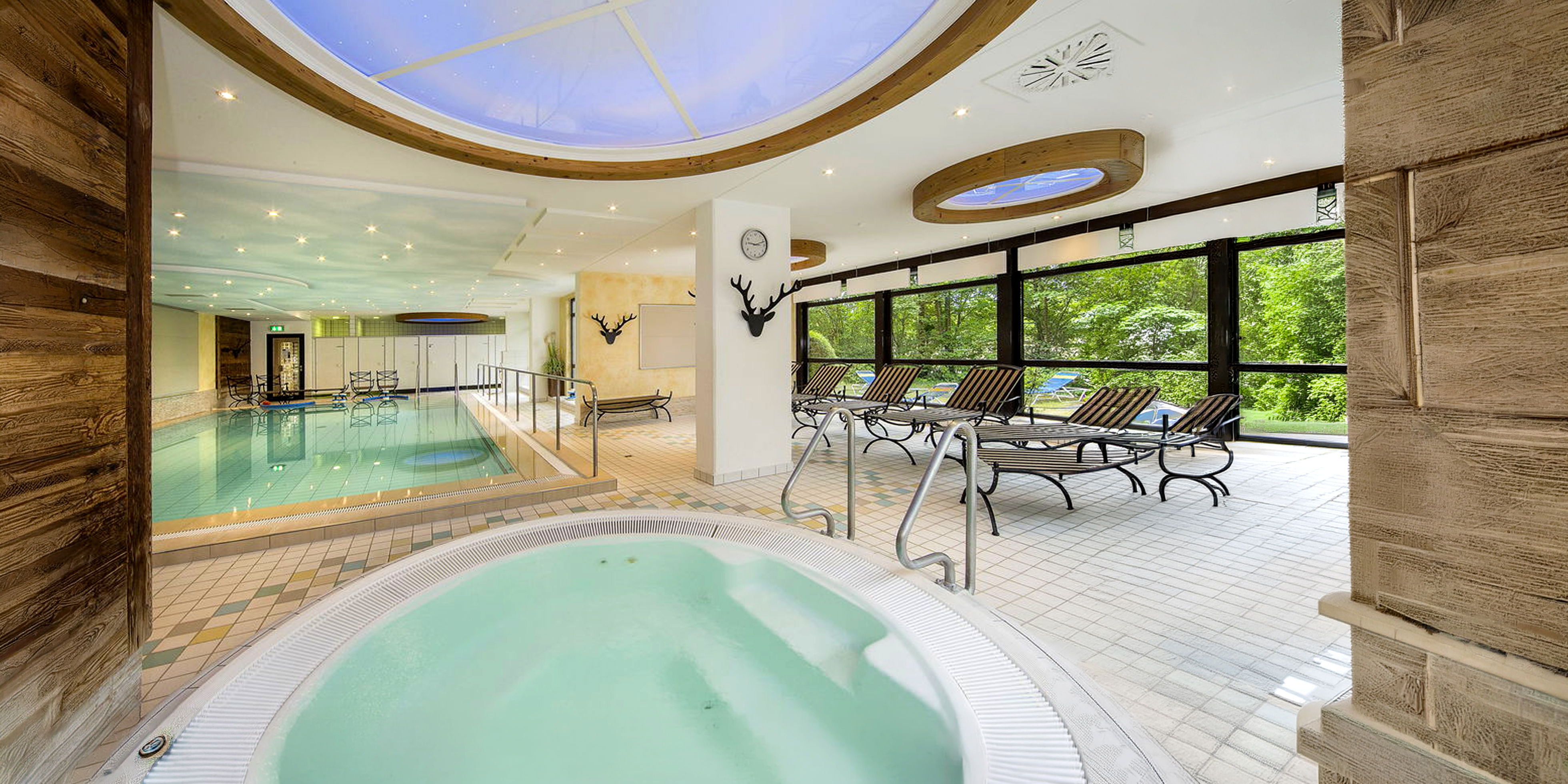 Wasser und Wärme entspannen Muskeln und Nervensystem. Viele Häuser bieten Innen‑/Außenpools, Whirlpool, Ruhebereiche und teils direkten Therme‑Zugang.